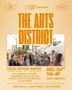 Art | Vintage | Clothing December 20th 11am – 4pm Local Artisan Market